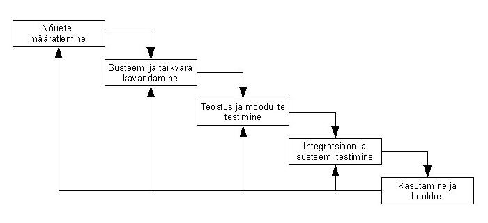 tootmisprotsessi eeskujulm kus iga etapp eelneb järgmisele. Tagasipöördumine eelmisesse etappi on